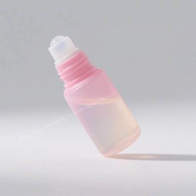 นี่คือขวดโรลเลอร์สีชมพู น่าจะทำจากพลาสติก มีพื้นผิวโปร่งแสงนุ่มนวล ขวดมีช่องเปิดรูปทรงลูกกลิ้งเพื่อควบคุมการไหลของของเหลว และฝาปิดเชื่อมต่อกับขวดอย่างแน่นหนาเพื่อป้องกันการรั่วไหล